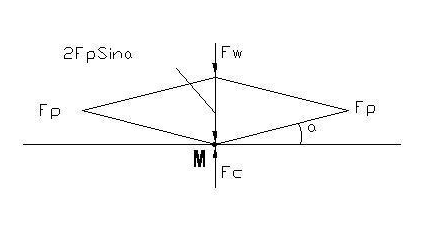 根據(jù)受力分析可得到如下結(jié)論:FC = FW + 2FP * sinα