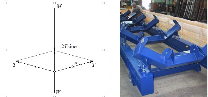 圖1 皮帶張力的法向分力對(duì)稱重的影響 圖2 澳大利亞CST公司生產(chǎn)的秤框和托輥支架
